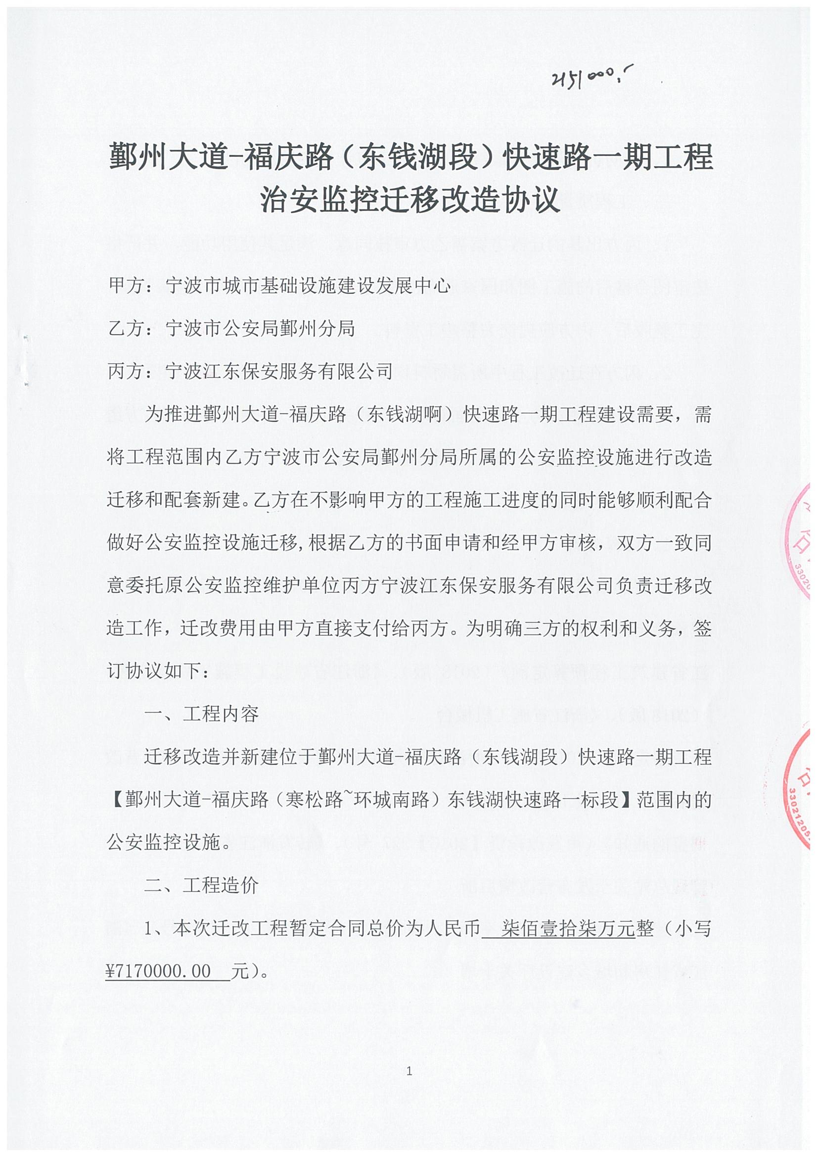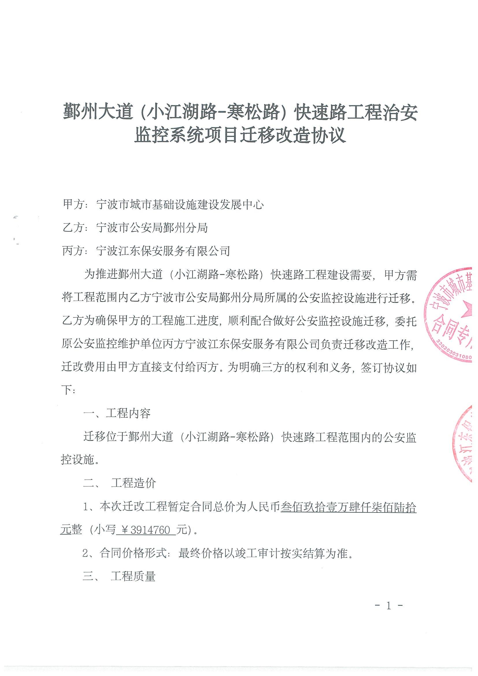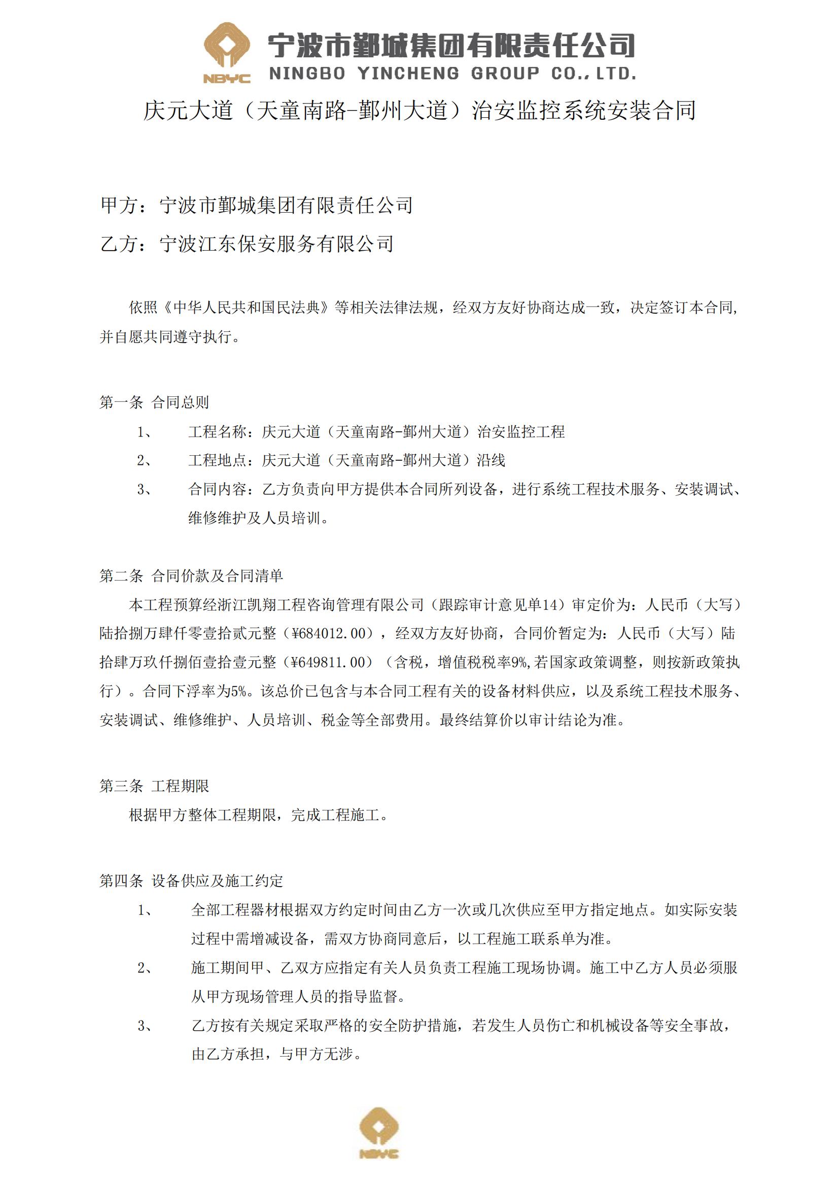 慶元大道(天童南路-鄞州大道)治 安 監(jiān) 控 系 統(tǒng) 安 裝工程
